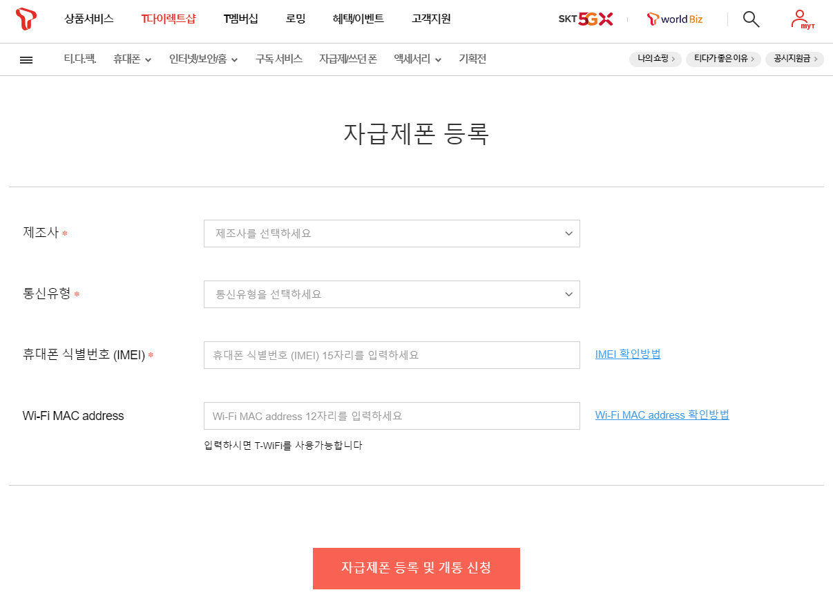 3. [자급제 개통]으로 들어가면 [자급제폰 등록 화면]이 나옵니다.